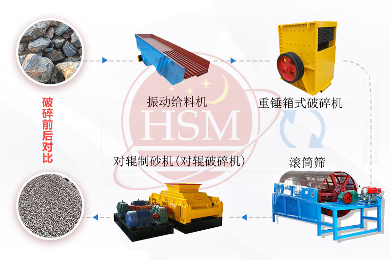 時產100噸對輥破碎機生產線制砂生產流程